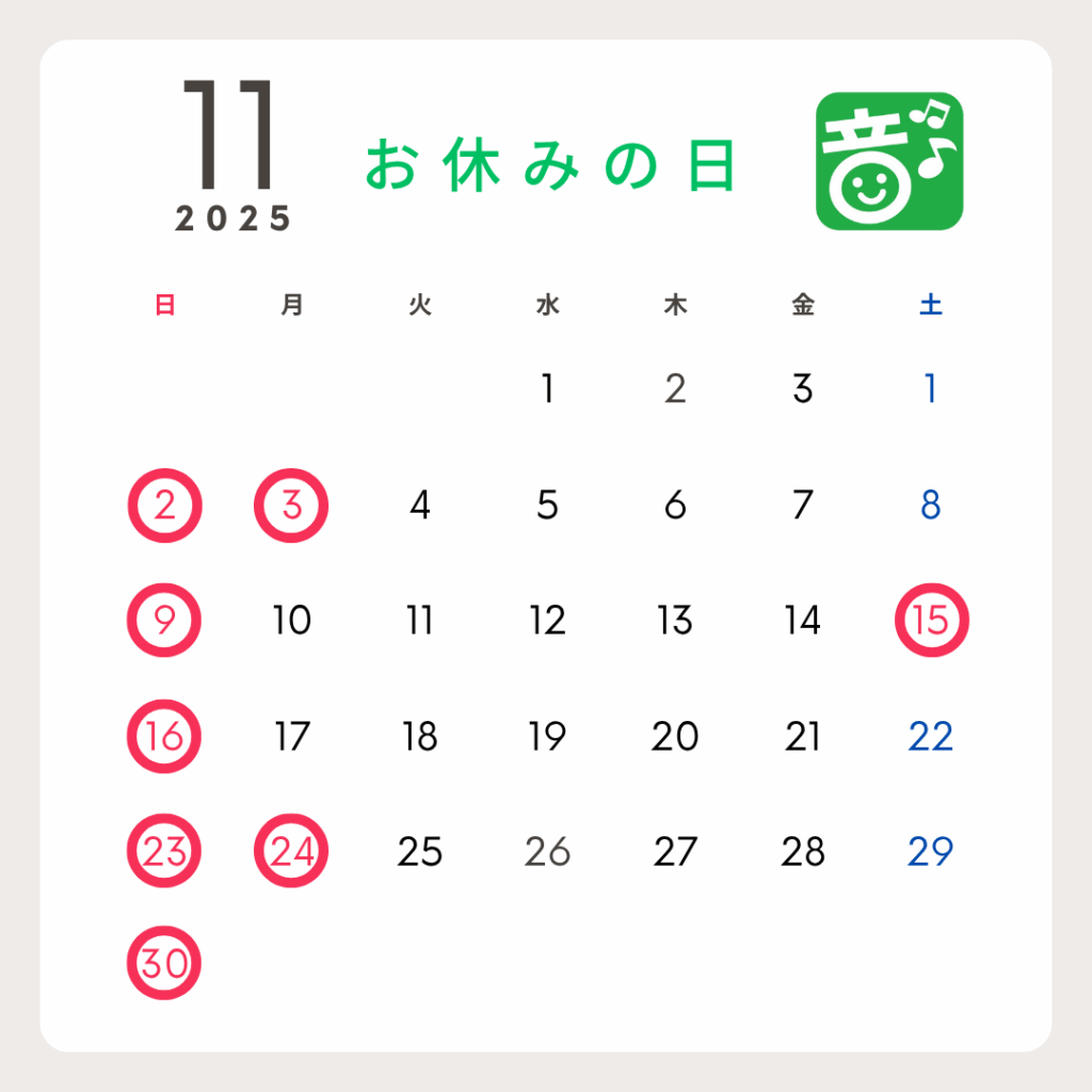 2025年11月の営業日のご案内を申し上げます。