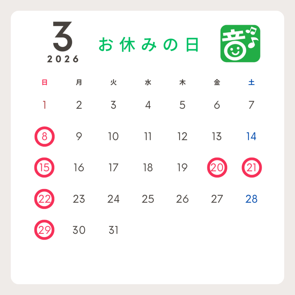2026年3月の営業日のご案内を申し上げます。